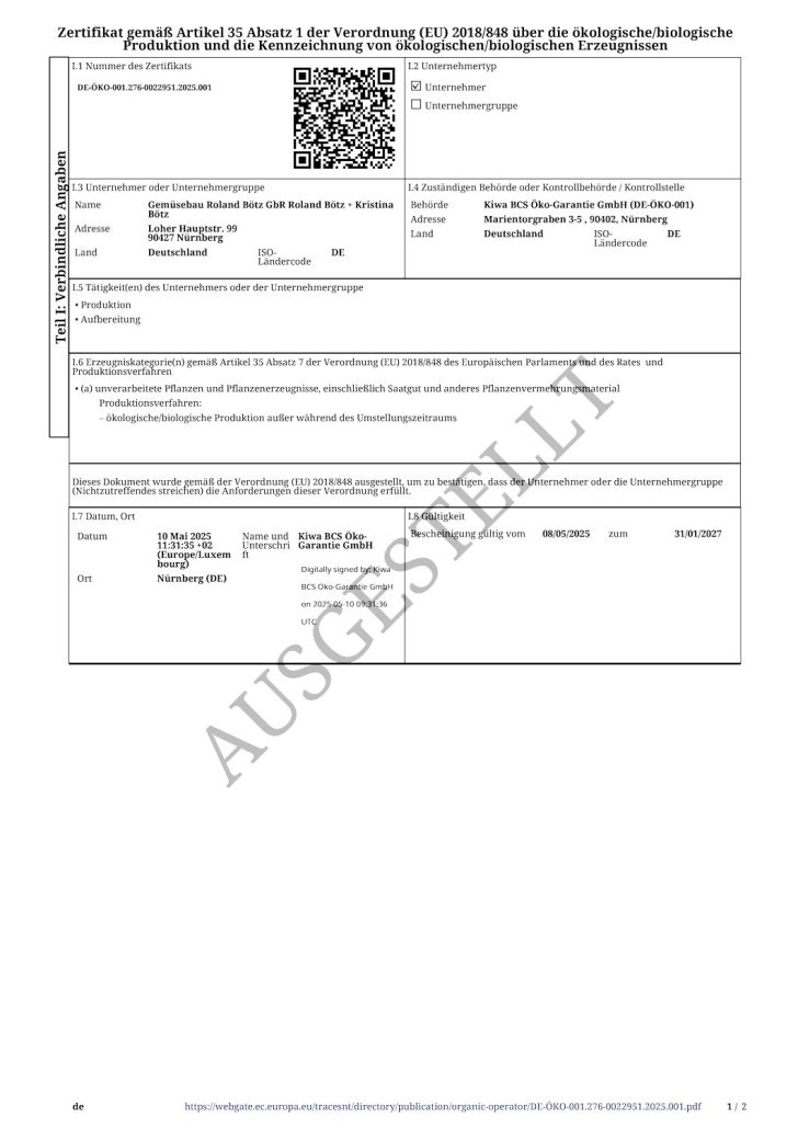Nach dem Eintritt von Tochter Kristina, ebenfalls Gärtnermeisterin, in unseren Betrieb agieren wir seit 2017 als „Gemüsebau Roland Bötz GbR“.